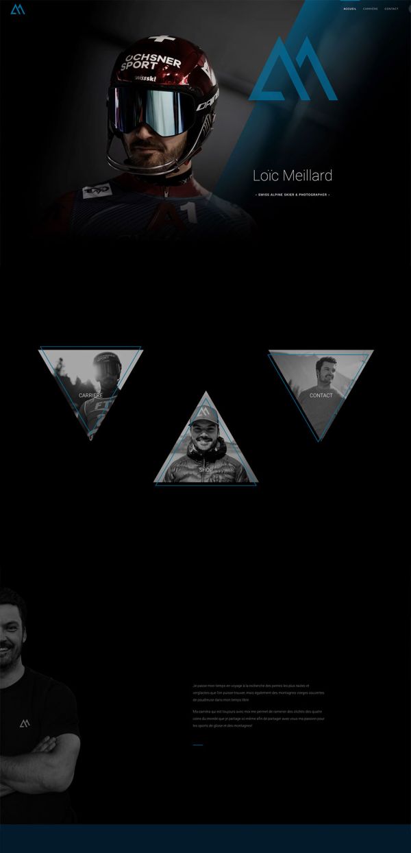 Die Website eines der weltbesten Skifahrer zeigt seine Leidenschaft fürs Skifahren mit beeindruckenden Fotos. Mit Leidenschaft und Fachwissen gestaltet, spiegelt die Site perfekt die faszinierende Aktivität von Loïc Meillard wider. Das moderne und ansprechende Design bietet von der ersten Sekunde an ein mitreißendes Erlebnis.
